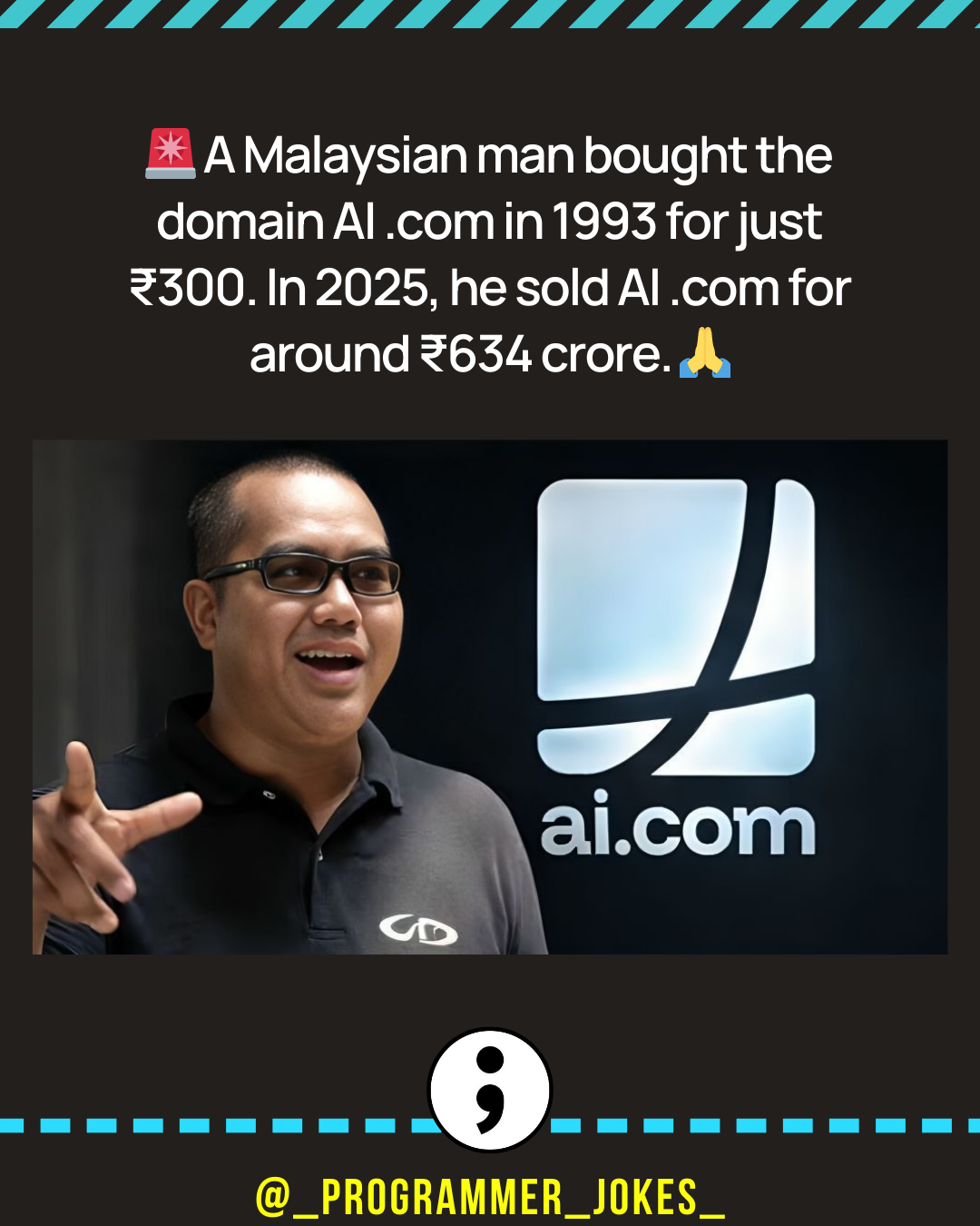 ₹300. That’s it. In 1993, while most people were busy figuring out dial-up internet and floppy disks, someone quietly made a purchase that would become one of the most ridiculous ROI stories ever told. He bought AI.com. Price paid: roughly ₹300.Price sold (2025): ~₹634 crore. Yes.Not crypto.Not stocks.Not real estate.A domain name. Back Then: “What … Read more